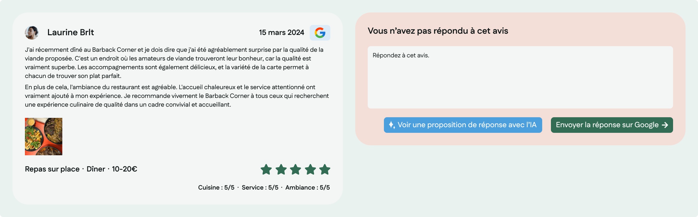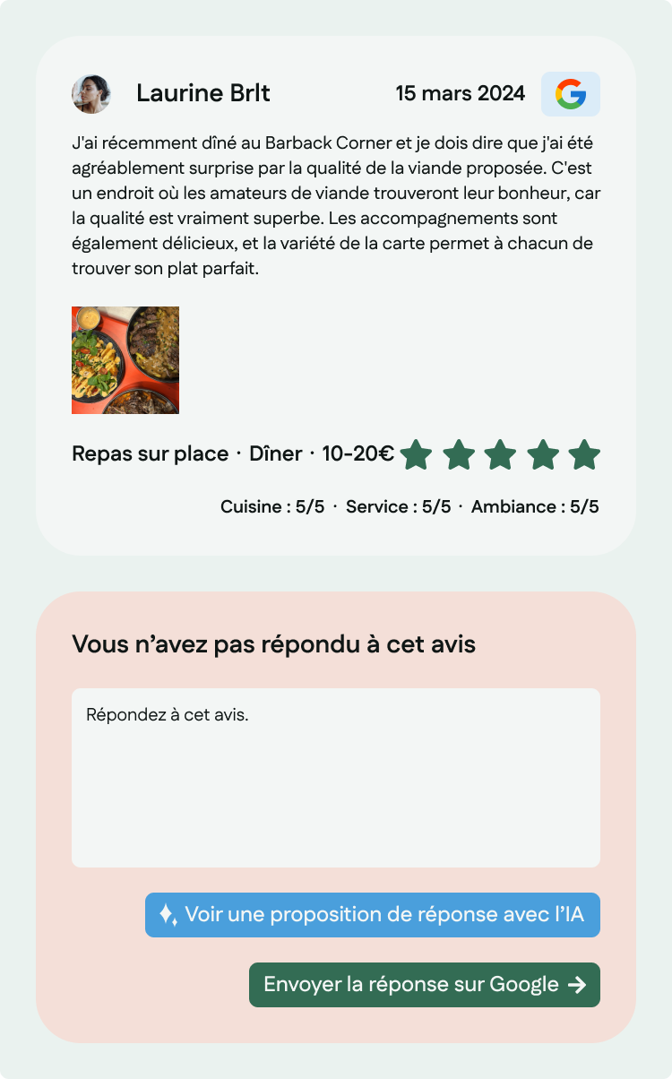 Répondez aux avis de vos clients en un seul clic, directement depuis notre plateforme. Gagnez du temps tout en maintenant une relation de proximité et de confiance avec votre clientèle.